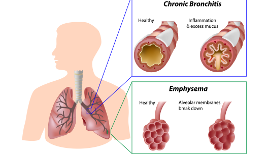 There are actually two separate illnesses affiliated with COPD, emphysema and chronic bronchitis. Most people with COPD have a combination of both illnesses. Chronic bronchitis is a long lasting cough that produces mucus, while emphysema is a gradual disease that eventually completely destroys the lungs.