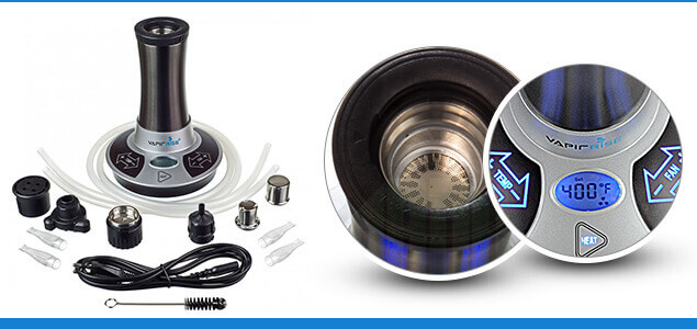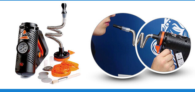 The Vapir Rise has a sleek stylish design with an attractive interface for controlling the temperature and fan. Just like the Arizer Extreme Q, you can receive your vapor via bag or whip inhalation. It also comes with a ton of helpful accessories, even a piece made just for grabbing the bowl while it’s hot.