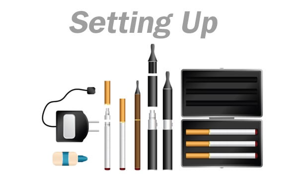 Charging the Batteries: The first thing you should do is take out the battery(s) and start charging them immediately. Hold off on setting up your e-cig until it’s fully charged, this will cause it to work better and have a longer lifespan.